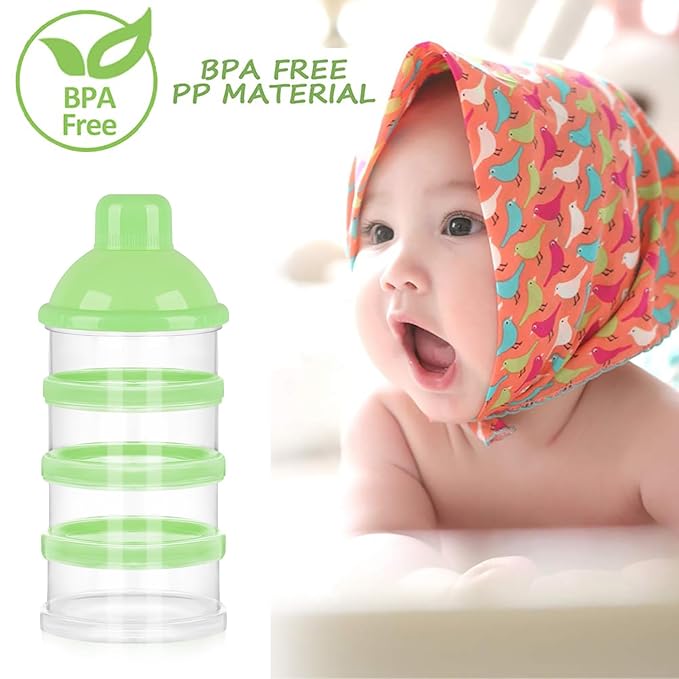 - Capacity - 4 layers design. You can put quantity of baby formula on each layer. A total of 4 layers of pre measured milk powder or food can be placed. Very pratical formula container for on the go.