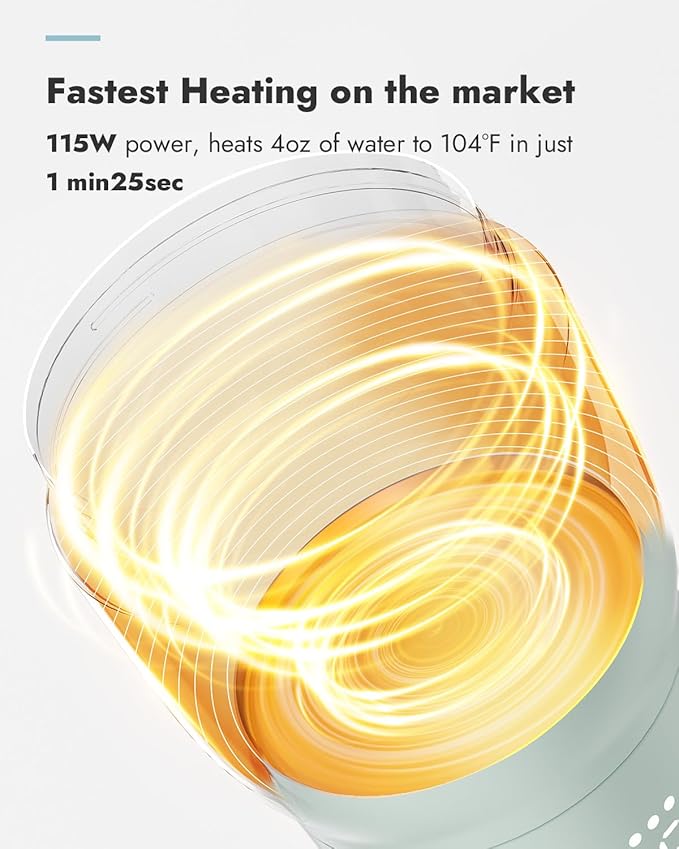 - 50% Faster Warming: Warms 4oz refrigerated milk to 98°F in 3min 50s and 4oz room-temp water to 104°F in 2min 10s. No more waiting—ideal for travel, on the go or late nights. Get perfect temps fast with this portable bottle warmer or travel bottle warmer.