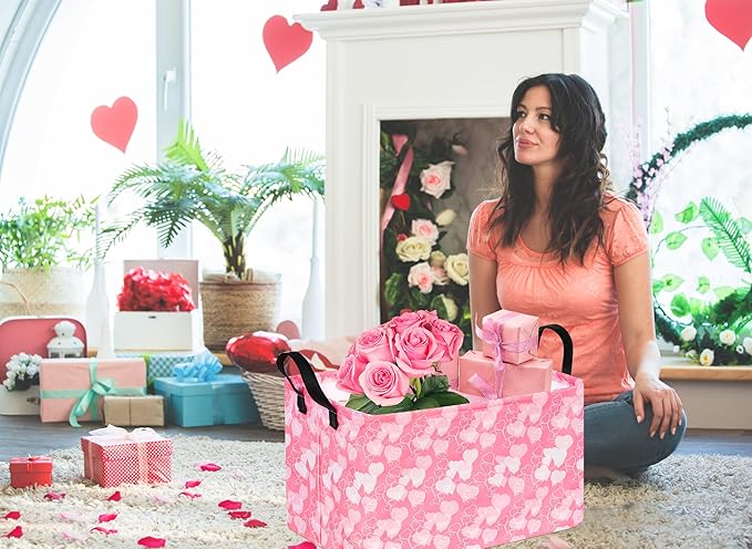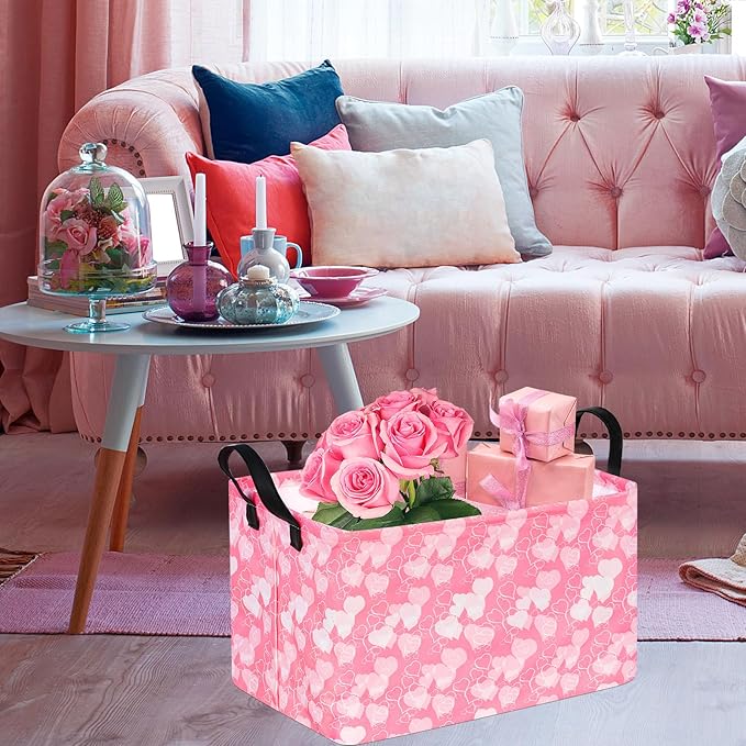 Rectangle Heart Partten Kids Gift Storage Basket Home Shelf Storage Basket Organizer Box Clothes Laundry Hamper Toys Nursery Basket Baby Laundry Basket with Handles