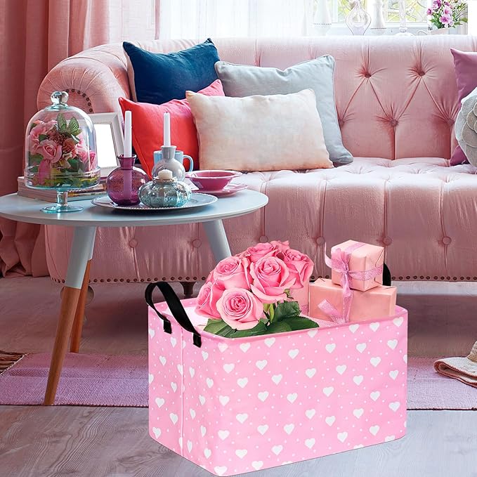 Rectangle Heart Partten Kids Gift Storage Basket Home Shelf Storage Basket Organizer Box Clothes Laundry Hamper Toys Nursery Basket Baby Laundry Basket with Handles