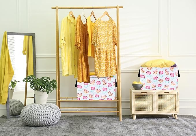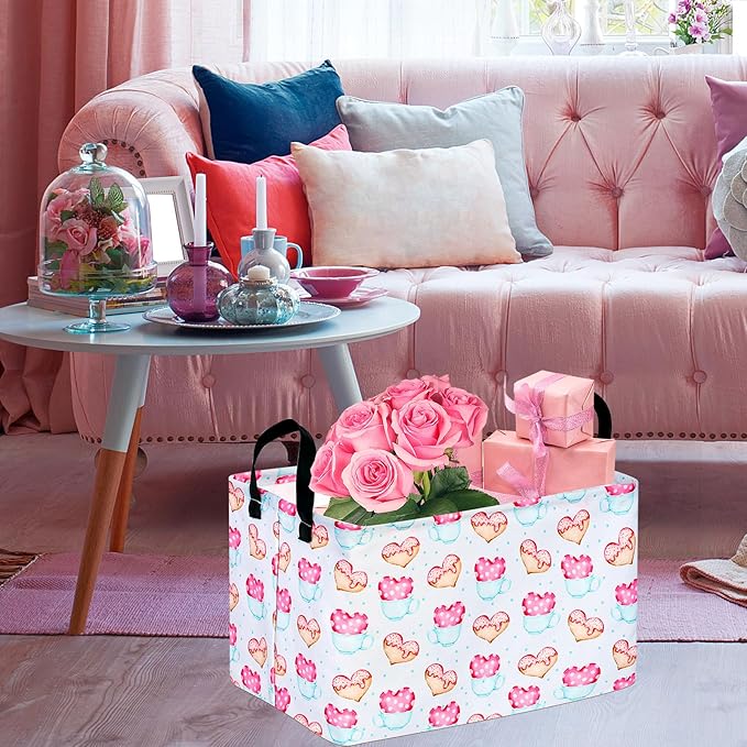 Rectangle Heart Partten Kids Gift Storage Basket Home Shelf Storage Basket Organizer Box Clothes Laundry Hamper Toys Nursery Basket Baby Laundry Basket with Handles