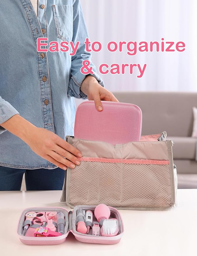 OTTOLIVES Baby Healthcare and Grooming Kit, 15 in 1 Baby Shower Gifts with Nail File, Hair Brush Comb, Toothbrush, Nasal Aspirator, Baby Essentials Kit for Newborn Infant Girls Boys (Pink)