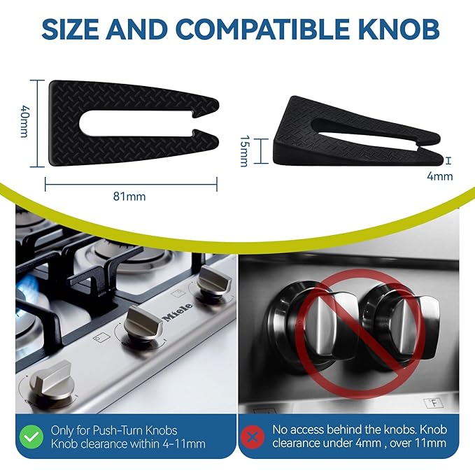 - COMPATIBLE RANGE: It's crucial to measure the stove knob gap before purchasing these child safety lock to ensure they fit. They are compatible with gaps range from 0.2 inches to 0.47 inches, suitable for most gas and electric stoves model. As a pack of 5 stove knob stoppers, essential for your baby proofing house checklist when you leave home.