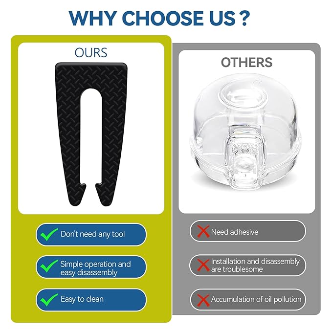 - EFFECTIVE & RELIABLE: It's advisable to use stove/oven locks, for child safety, especially in bustling kitchens. Simply wedge locker behind the stove knobs, they work effectively to prevent knobs from being pushed in and turned. These upgraded knobs stoppers, made of high quality silicone with anti-slip surface, stay in place very well, and unscrewing the knob covers. In contrast, the traditional plastic child proof stove knob covers do not stay securely in place and can be unscrewed.