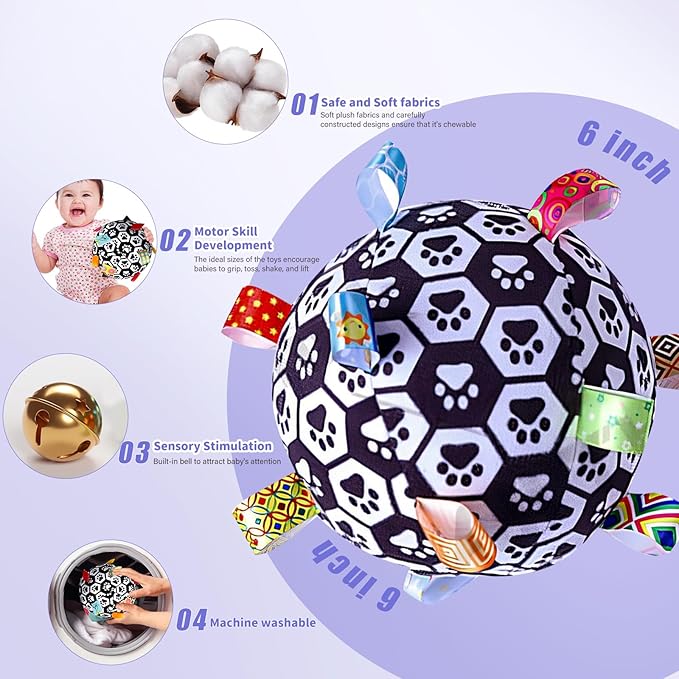 - Baby Sensory Interactive Toys for Newborn: Our baby sensory toys come with various sound-making toys that can train the baby's hand-eye coordination and grasping ability. The baby rattle soccer toy can make a bell sound, and parents can draw the baby's attention by shaking the soccer ball to enhance interactivity. The baby cloth book with a mirror can make a rustling sound of paper, and the cube pendant is suitable for hanging on a stroller or car, and it will also make a crisp bell sound.