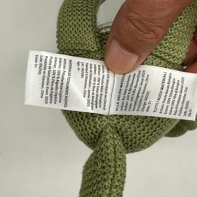 100% Organic Cotton Baby Stuffed Animals | 7.1" Green Dinosaur Plush for Newborn