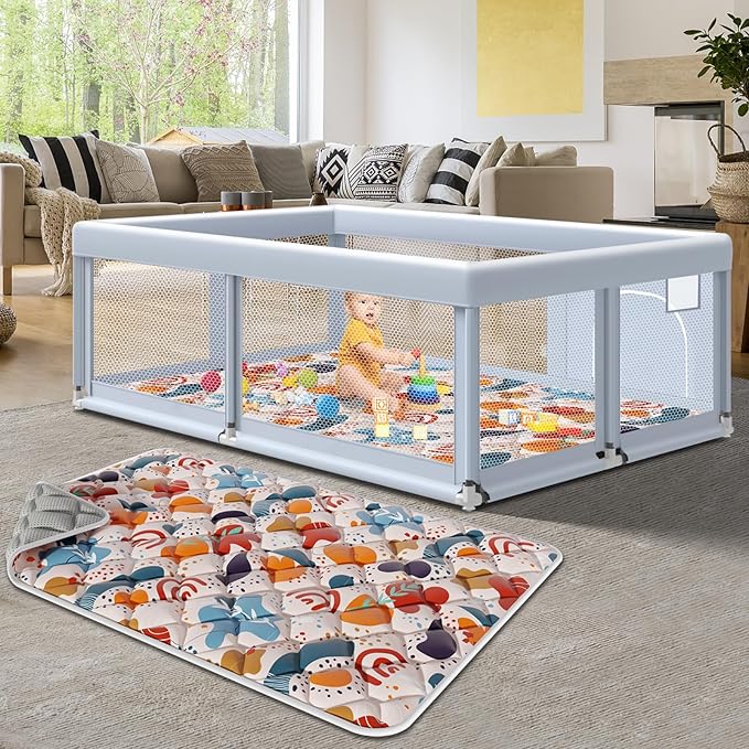 - 👶[FREE YOUR HANDS AND ENJOY YOUR TIME]Our baby playpens can provide a great safe space to prevent them from getting lost or touching dangerous areas. Parents can free up their hands to do any things, such as cooking, cleaning, reading, no longer need to be worrying about their baby's safety, and you can check the status of your baby at any time, which is perfect for busy parents who want to provide their children with a safe and entertaining place to play while they are at work or leisure.