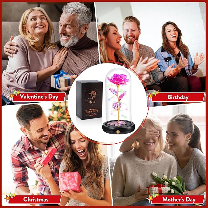 - Women's Holiday Gift Ideas: When the colorful LED light shines through the glass cover, the roses will be extra touching, it will be a good idea for birthday, mother's day, valentine's day, wedding anniversary, Christmas