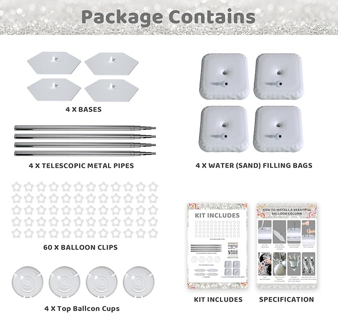 Balloon Arch Stand, Balloon Stand Set of 4, 7 Feet Height Adjustable Metal Balloon Column Stand for Party Decorations Wedding Birthday, Graduation Party Decoration, Baby Shower