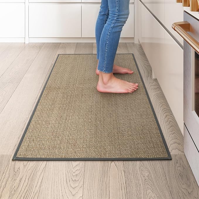 Wonnitar Washable Braided Rugs 2x3 Kitchen Mats for Floor, Absorbent Doormat Woven Neutral Rug, Rubber Backed Non Slip Bathroom Rugs Floor Carpet for Front Door Kitchen Sink(Grey/Khaki,2'x3')
