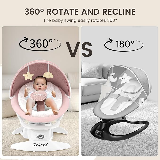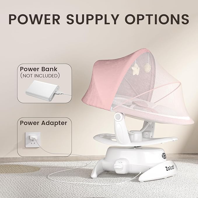 - PORTABLE AND CONVENIENT -- Electric baby swing supports power adapter or DC power. The portable baby swing also supports power banks (power bank not included)