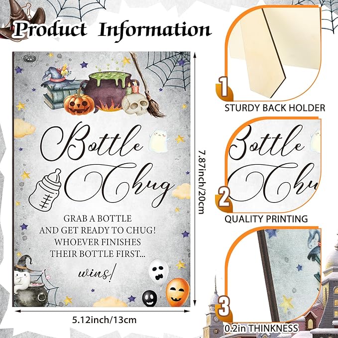 - Exquisite and Detailed Design: the Halloween design of the baby shower bottle game sign add a touch of elegance and sophistication to your party, making it a good choice for those seeking to enhance their decor and add a unique touch to their event