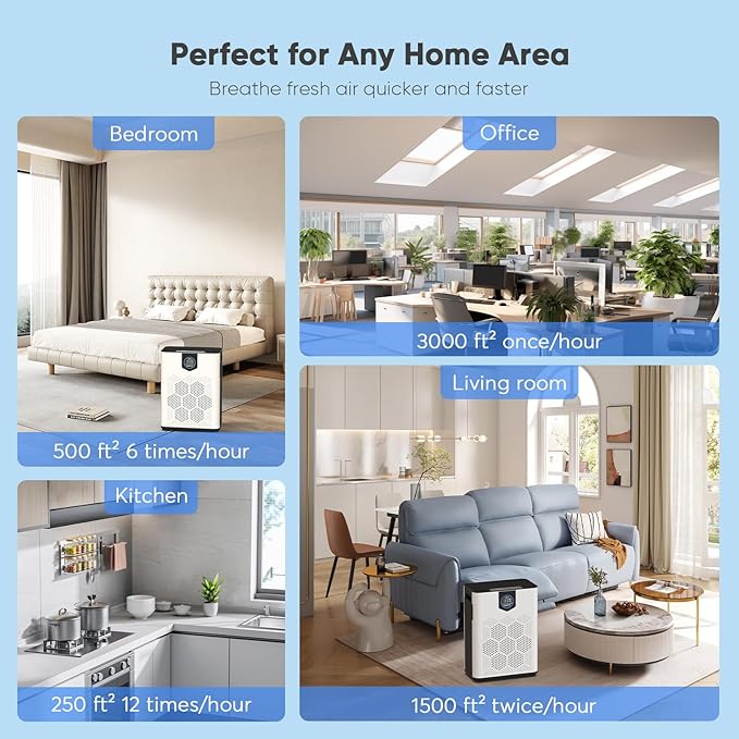Air Purifiers for Home Large Room Up to 3000 FtΒ² with 2xH14 HEPA Filters, Air Purifiers for Pets Bedroom with Washable PreFilters, 2 TIMES Purification Speed In Turbo Mode for Dust, Hair, Odor