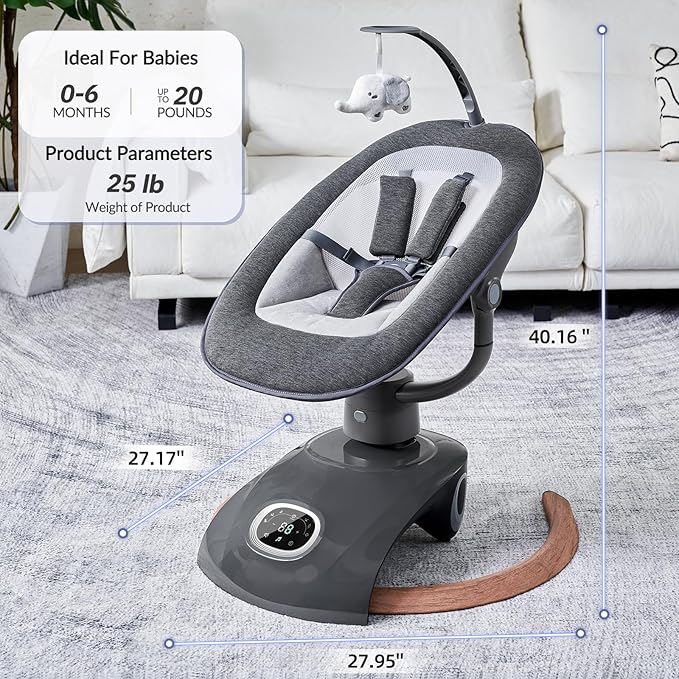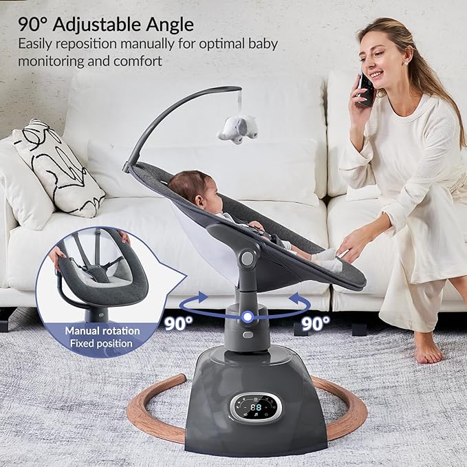 - Simple Setup and Adjustable Comfort: This electric baby swing offers tool-free assembly for quick setup. The baby seat features adjustable recline, supporting positions from sitting up to lying back, making it a convenient choice for parents on the go.