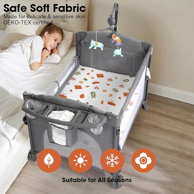 - IDEAL FOR BABY ESSENTIALS – Our 4 pack mini crib sheets(38"X 26")matches mini crib mattress and playard mattress perfectly, making as pack and play sheets,it creates a comfortable playground and safe sleeping environment for your baby but also binds together the whole decor of your nursery as per its theme.