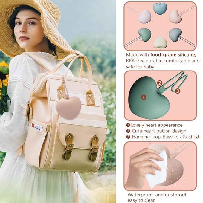- 【Large Opening with Button Clasp】:The pouch features a large upper opening for quick access to pacifiers. The cute heart-shape button clasp ensures the holder stays securely closed, even when not snapped shut. Unlike stainless steel zipper holders, our all-silicone design material is gentle on baby's skin with no risk of harm to the baby,but also offers long-lasting durability.