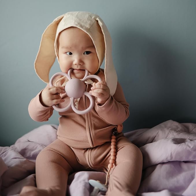 mushie Silicone Baby Daisy Rattle Teether Toy (Soft Lilac)