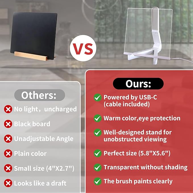 - 【Multi-Purpose】Our light board has a variety of uses - from being an excellent LED drawing board for kids to serving as a cafe menu board, household chore chart, vision board, or magic board. It's versatile enough for preschool classroom must haves or home office essentials.