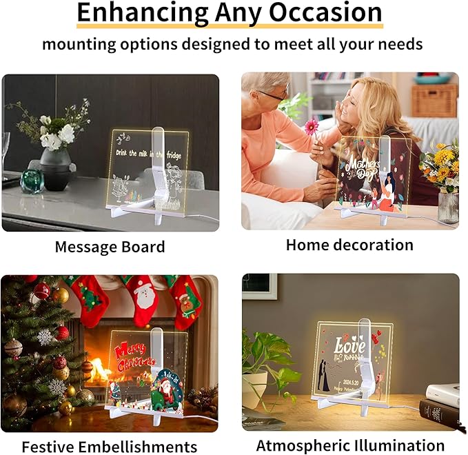 - 【With LED Note Board】】The LED acrylic dry erase board base is embedded with a glowing LED light strip. Just press a button and the LED note board will automatically glow, creating a charming neon effect at night.