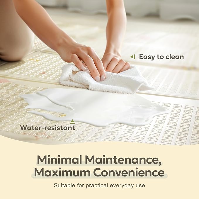 - EASY TO CLEAN & FOLD: Enjoy effortless clean-ups with our waterproof foam play mat that resists spills and stains. A simple wipe with a damp cloth or towel keeps it pristine and ready for play. Its foldable design allows you to quickly fold it into a compact size and ensures easy storage and portability