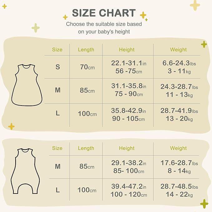 - 【TWO SIZES AVAILABLE】Select the perfect size for your baby: Size M (Length 85 cm) is ideal for babies measuring 95-105cm, while Size L (Length 100 cm) is designed for babies ranging from 110-120cm. For the best fit, please consult the size chart to ensure your little one is comfortable and well-fitted