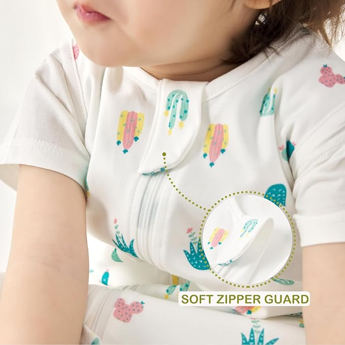 - 【SNAPS ON THE BOTTOM DESIGN】This summer toddler sleeping bag stands out with thoughtful details parents love. Crotch snaps at the bottom allow for quick, hassle-free diaper changes, while a 2-way zipper makes it easy to dress your baby or adjust as needed. The whole stripe of zipper protectors ensure your little one safe from scratches