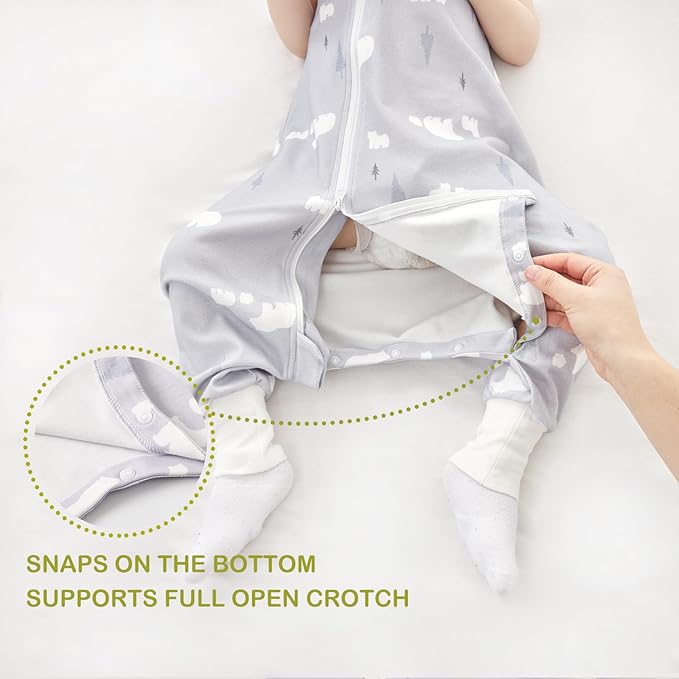 - 【SNAPS ON THE BOTTOM DESIGN】This summer toddler sleeping bag stands out with thoughtful details parents love. Crotch snaps at the bottom allow for quick, hassle-free diaper changes, while a 2-way zipper makes it easy to dress your baby or adjust as needed. The whole stripe of zipper protectors ensure your little one safe from scratches