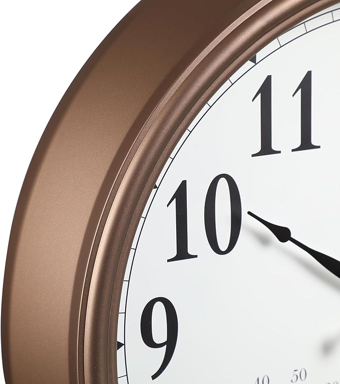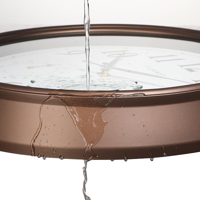 - ăPremium Workmanshipă: : Crafted with a sturdy plastic frame,UV resistant dark brown/bronze paint and clearly glass lens, this wall clock is designed for long-lasting use and easy cleaning