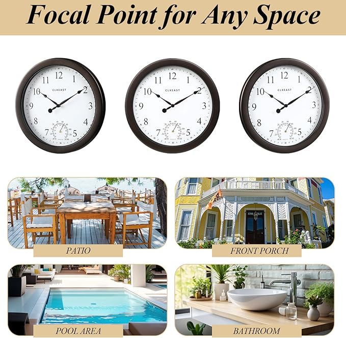 - [Thoughtful Gift Choice]: Whether for a housewarming, Mother's Day, Father's Day, Birthday, or any special occasion, this outdoor clock makes for a unique and ideal gift, perfect for those who appreciate the marriage of style and functionality
