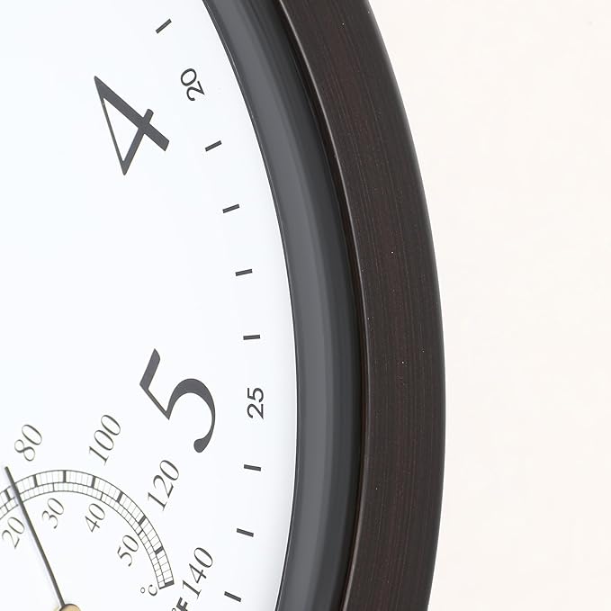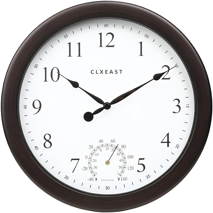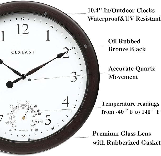 - [Built-In Temperature Monitoring]: With a built-in thermometer sensor, this outdoor clock displays temperature readings from -40°F to 140°F (-30°C to 50°C) , keeping you informed about the indoor outdoor temperature conditions