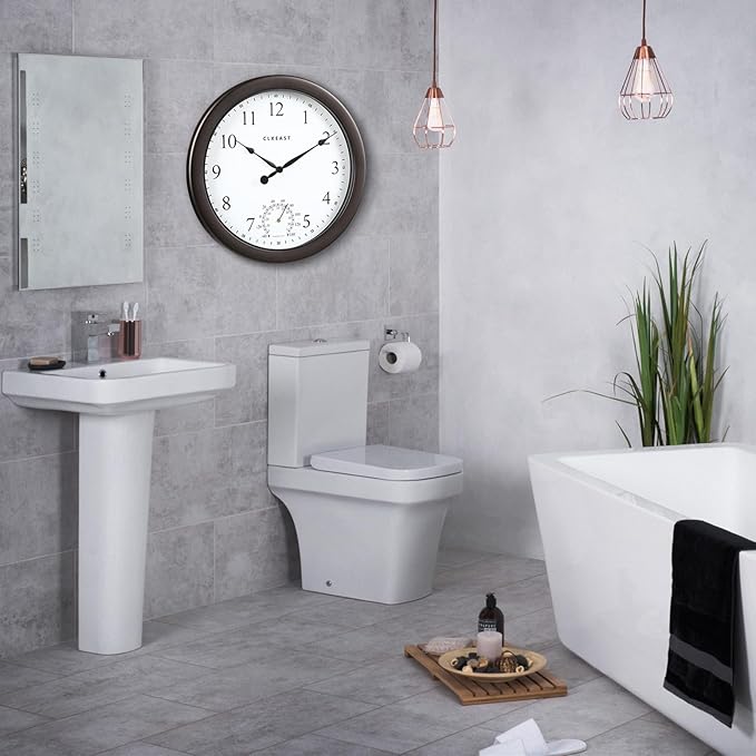 CLXEAST 10.4 Inch Indoor Outdoor Clocks Waterproof,Outdoor Clock with Temperature for Bathroom,Patio, Pool,Kitchen,Oil Rubbed Bronze Black Finish,House Warming Gifts New Home