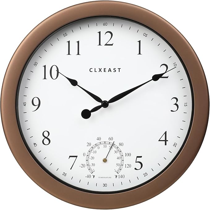 - [Built-In Temperature Monitoring]: With a built-in thermometer sensor, this outdoor clock displays temperature readings from -40°F to 140°F (-30°C to 50°C) , keeping you informed about the indoor outdoor temperature conditions