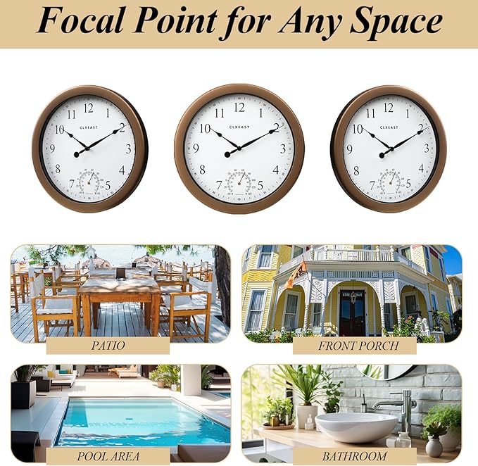 - [Thoughtful Gift Choice]: Whether for a housewarming, Mother's Day, Father's Day, Birthday, or any special occasion, this outdoor clock makes for a unique and ideal gift, perfect for those who appreciate the marriage of style and functionality