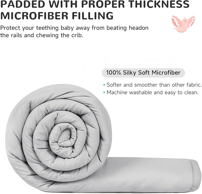 - 【Protection to prevent baby from getting hurt】: The thick padding of the baby crib bumper prevents baby's head from colliding, and the soft edge protector for baby protects baby's delicate teeth and railings to prevent paint chips from falling into the mouth. Our crib padding for sides is durable and provides long-term protection for your investment. The perfect accessory for safety and protection.