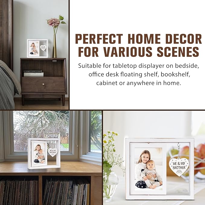 - PERFECT SIZE & EASY DISPLAYING- 360Β° rotating picture frame and a heart-shaped wood sign hanging beside. Simply insert 2pcs 4 x 6 photo into the inner frame and put it on your bedside, desk, or any flat surface, Adding a touch of charm to your little one's nursery, this adorable photo frame is perfect for capturing precious moments.