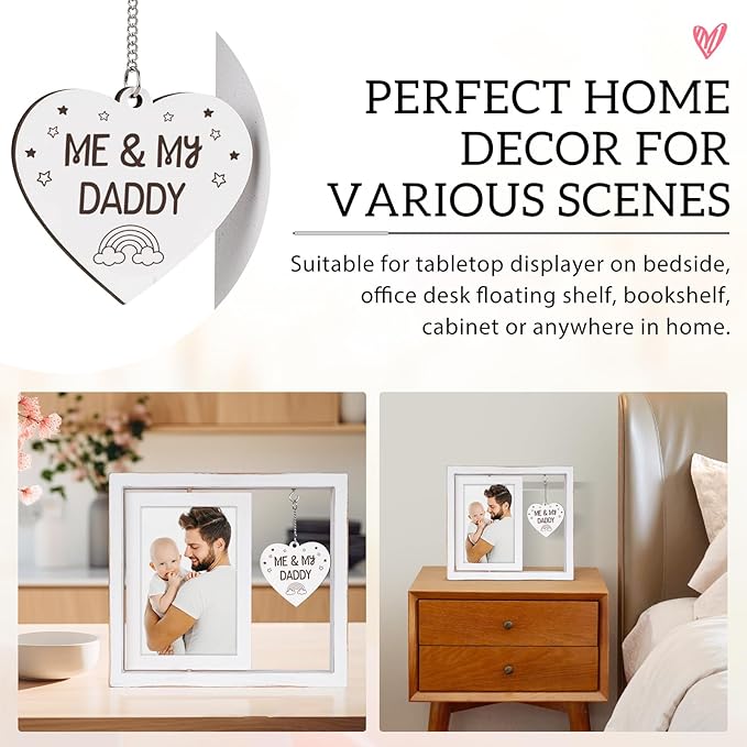 Me and My Daddy Picture Frame,New Dad Gift,Baby Gifts from Daddy,Room Decor Vintage Style,Baby Gender Neutral Rotating Photo Frame 4x6