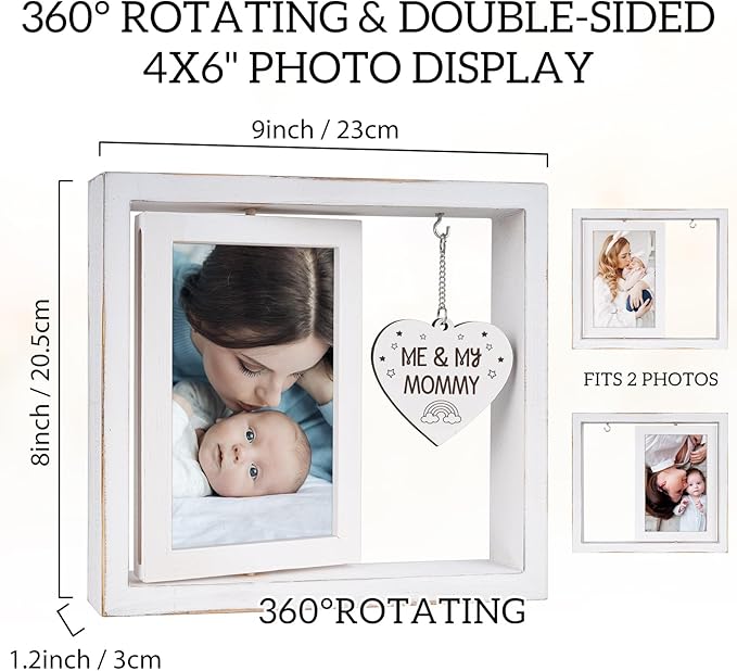 Me and My Mommy Picture Frame,First Time Mom Gift,Mommy Gifts for New Baby,Mother to Be Presents,Room Decor Vintage Style,Baby Gender Neutral Rotating Photo Frame 4x6