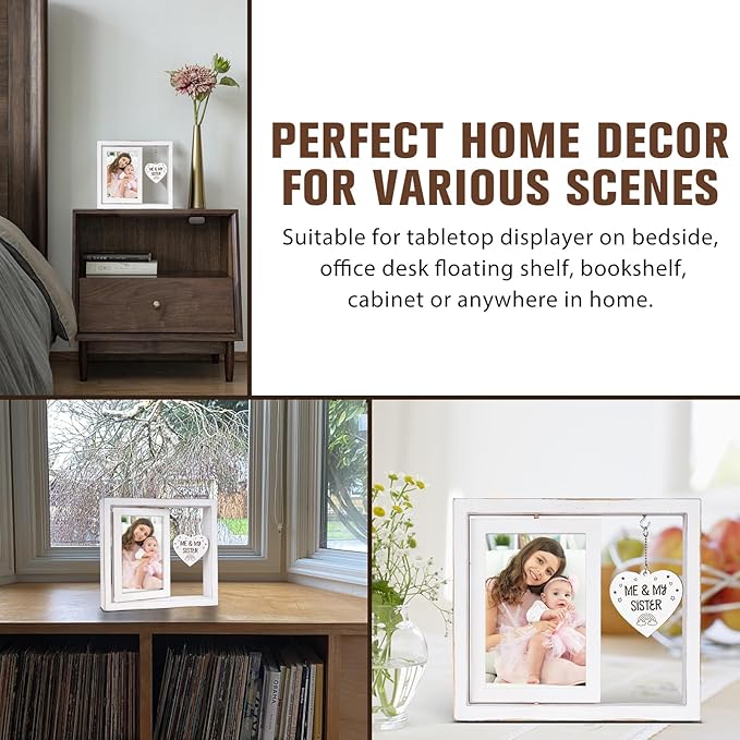 - IDEAL BABY SHOWER GIFT- The ideal choice to welcome new siblings into the world. 360Β° rotating picture frame and a heart-shaped wood sign hanging beside.It allows you to display 2 photos simultaneously. You can always go back to visit in your memory.