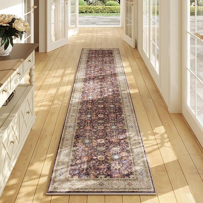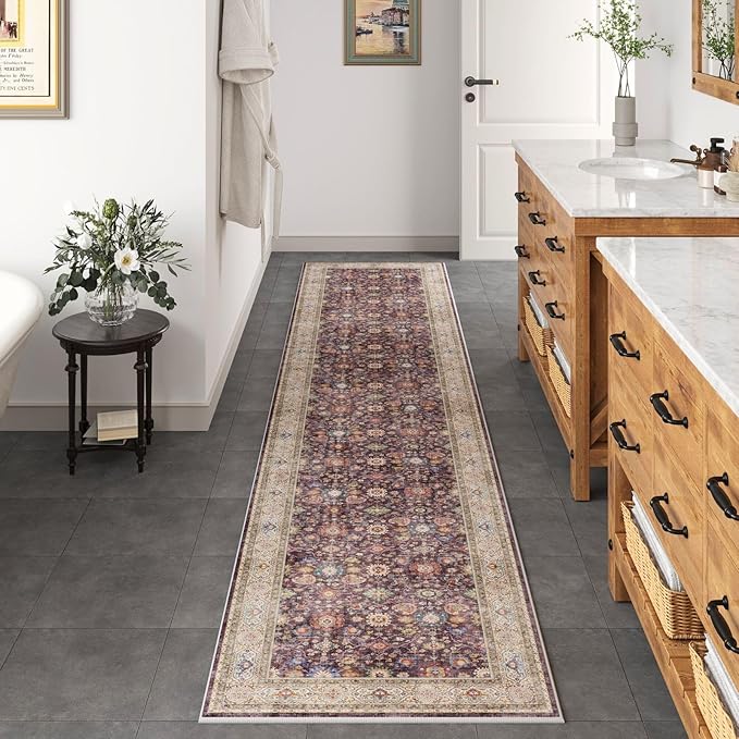 Runners for Hallways Kitchen Runner Rug Non Slip 2'x10' Long Washable Rugs with Rubber Backing Soft Vintage Carpet Runner for Hallways, Kitchen, Laundry, Bedroom, Bathroom (Dark Espresso)