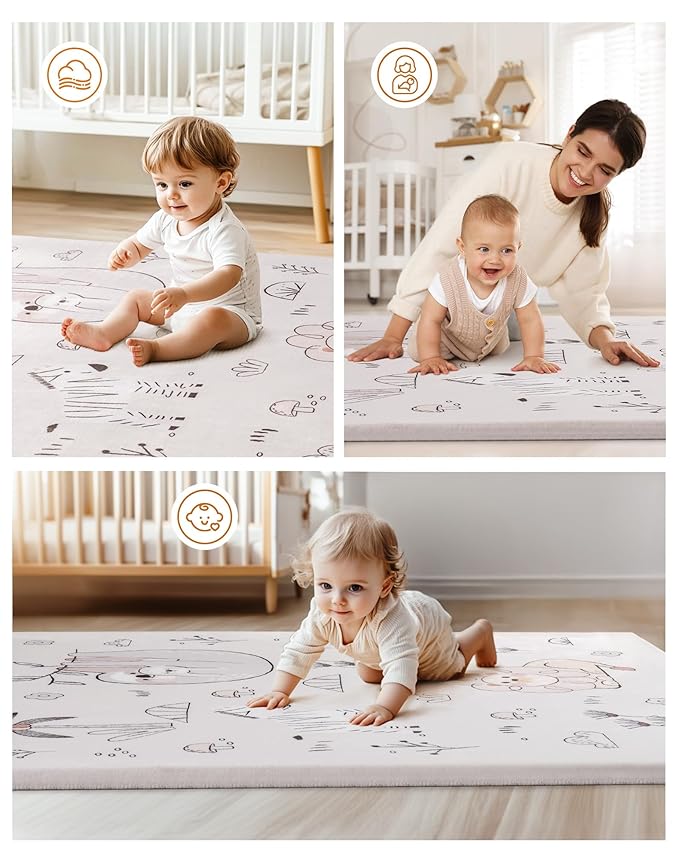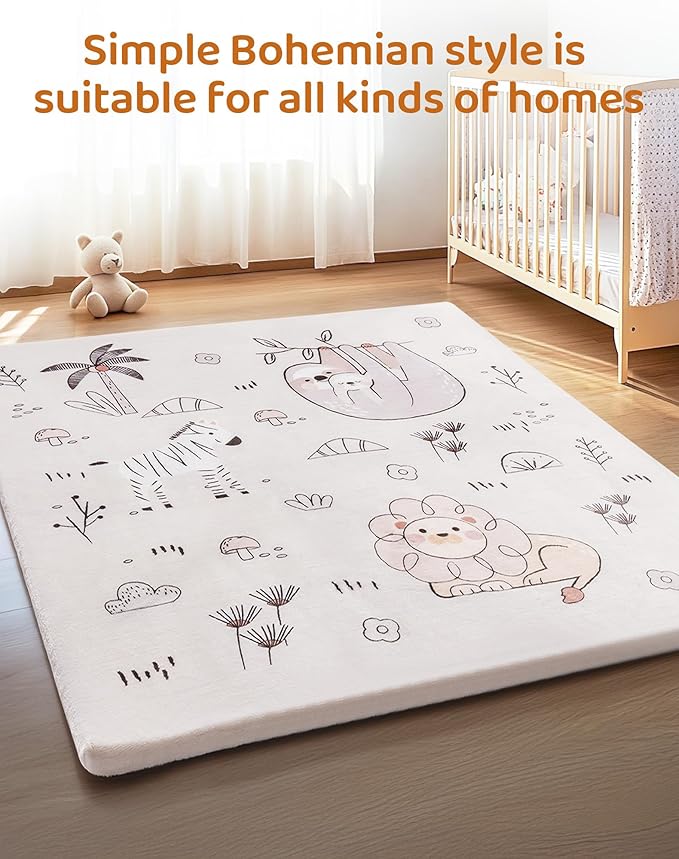 - 【Baby Safe】 Our zoo-themed foldable play mat is significantly thicker than other mats and features non-slip padding, turning your child's play area into a soft and safe adventure zone. Kids will love rolling, sliding, and playing on our mat, and you won't have to worry about them getting hurt on hard floors.