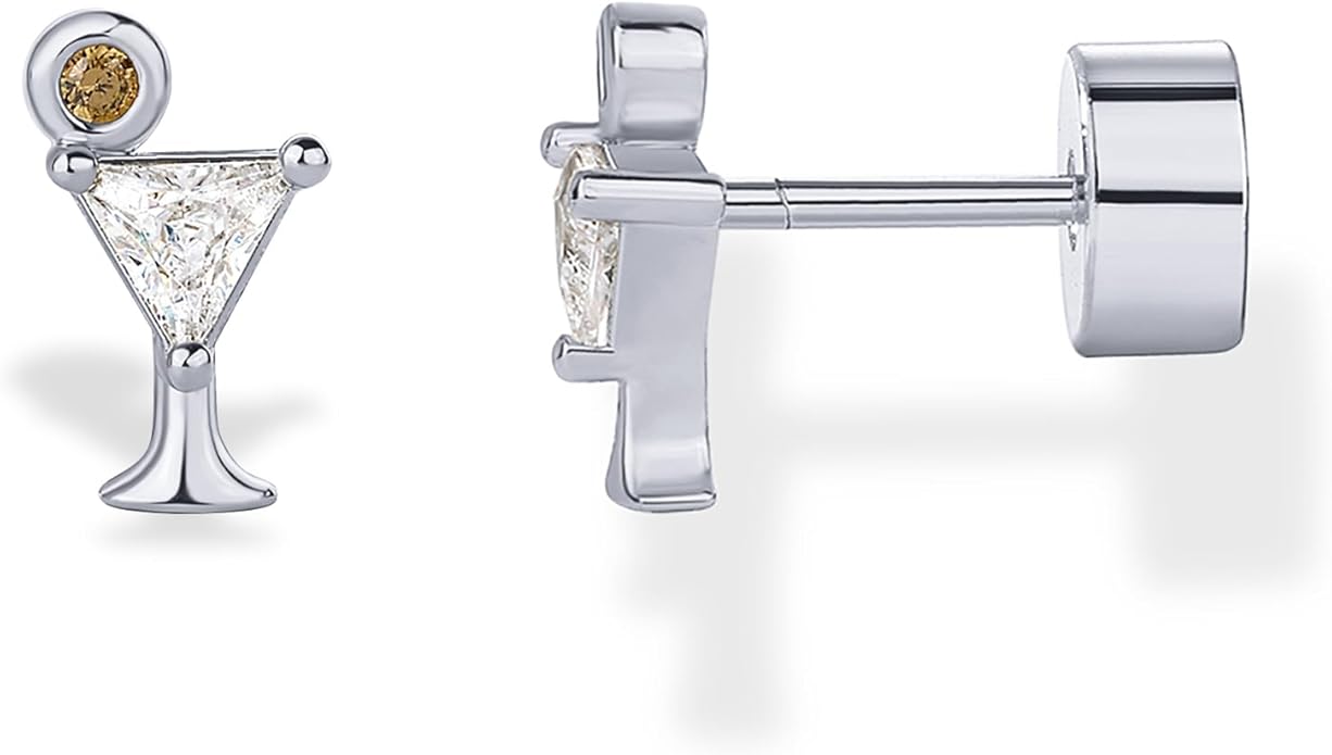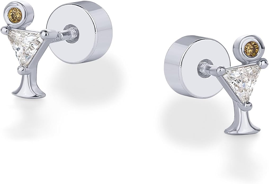 - HIGHLIGHTS: Happy hour is whenever you're wearing these 7.5mm x 4.3mm martini-themed earrings. Cheers to this flatback earring pair featuring rhodium plating, premium cubic zirconia stones, and screwback posts.