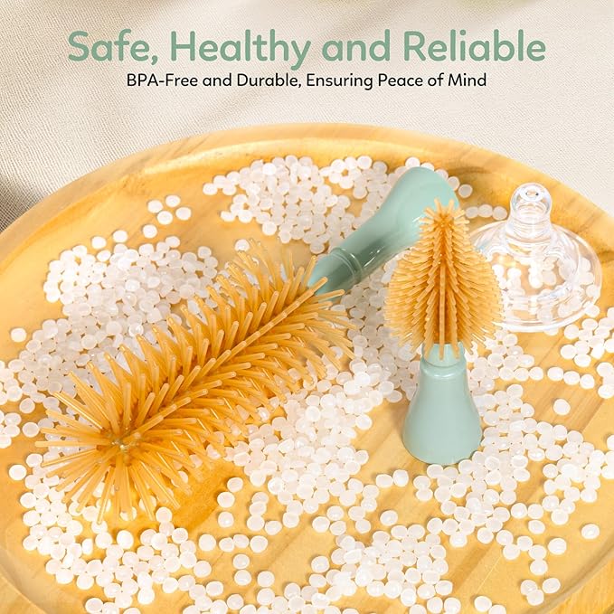 - 【Safe & Durable Materials】Made from premium food-grade silicone and ABS materials, free of BPA, this baby bottle cleaner brush set ensures safety for your baby. Silicone brush heads, compared to traditional plastic options, are boil-safe for sterilization and offer greater durability. This bottle cleaning set is a reliable, long-term cleaning solution for baby bottles and pump parts.