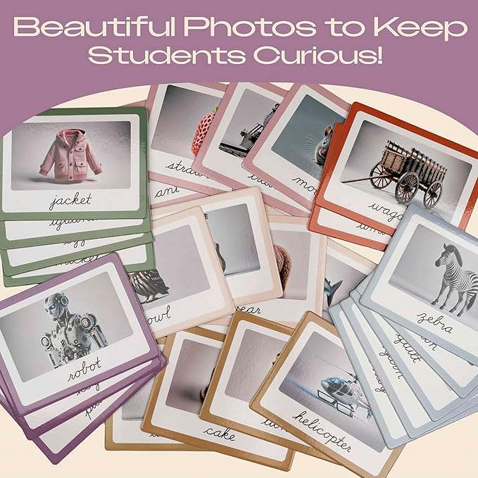 - Vibrant & Realistic Images for Engaging Learning – Our alphabet flash cards feature bright, high-quality, and realistic images, making learning the alphabet exciting for young learners. These ABC flashcards for kids ages 3 and up help children connect letters with familiar objects, enhancing cursive writing and phonics skills. Perfect for classroom supplies, homeschool, and preschool activities, these visually appealing cards keep kids engaged while reinforcing letter recognition and early literacy.