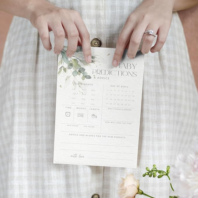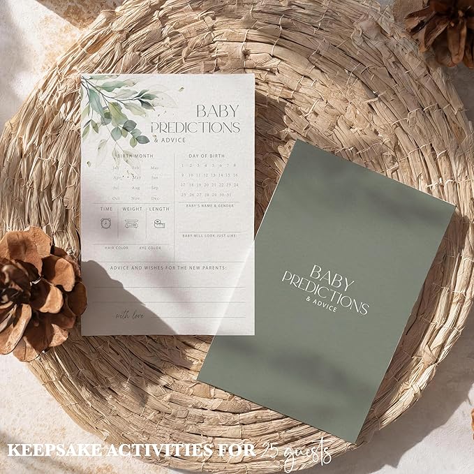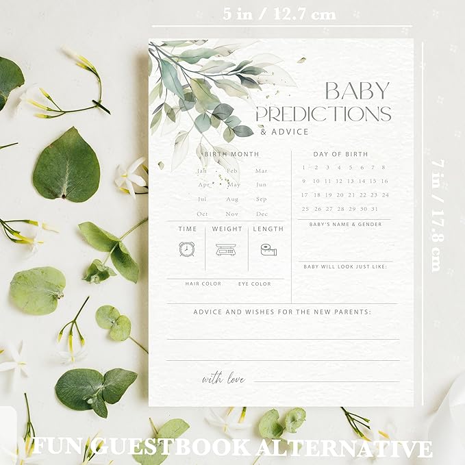Advice For New Parents Baby Shower, Baby Predictions & Advice Cards For Baby Shower Games Activities, Wishes for Baby, 25 Double-Sided Thick Cards – Greenery A06