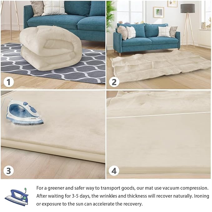 - 🌟HOW TO CARE FOR YOUR MAT:When you open the package,it may be wrinkled,very flat and inelastic.Don’t fret - this is normal! As long as it is left for 3-5 days, the mat will naturally regain its thickness and elasticity. we recommend steaming or ironing it to speed up recovery. After you have completed the steaming/ironing, your thick floor padded mat should rebound and be ready to use!