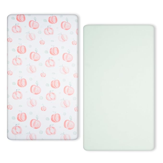 TILLYOU Baby Crib Sheets for Boys Girls, Super Soft Toddler Bed Sheets, 2 Pack Sheets for Standard Crib Mattress 28x52in, Peach dot