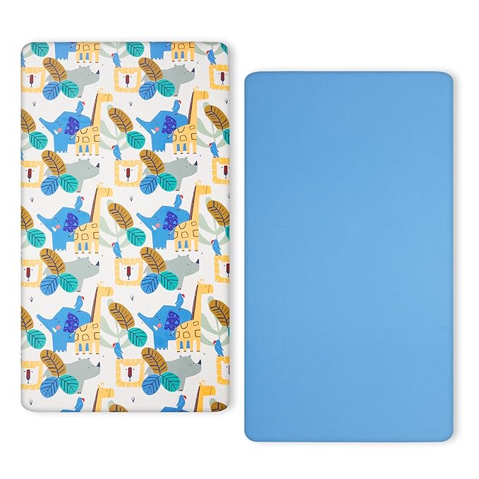 TILLYOU Baby Crib Sheets for Boys Girls, Super Soft Toddler Bed Sheets, 2 Pack Sheets for Standard Crib Mattress 28x52in, Animal Geometry