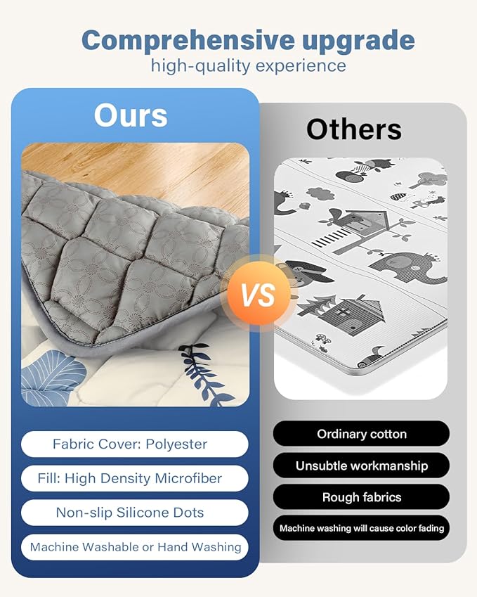 - 【Comfortable and Soft】 The infant play mat is made of super soft fabric and is filled with 690g of premium 100% polyester per square meter, making it very soft and comfortable. Provides pure comfort for baby crawling, rolling and playing