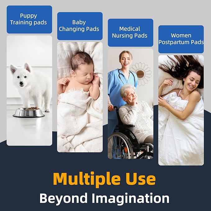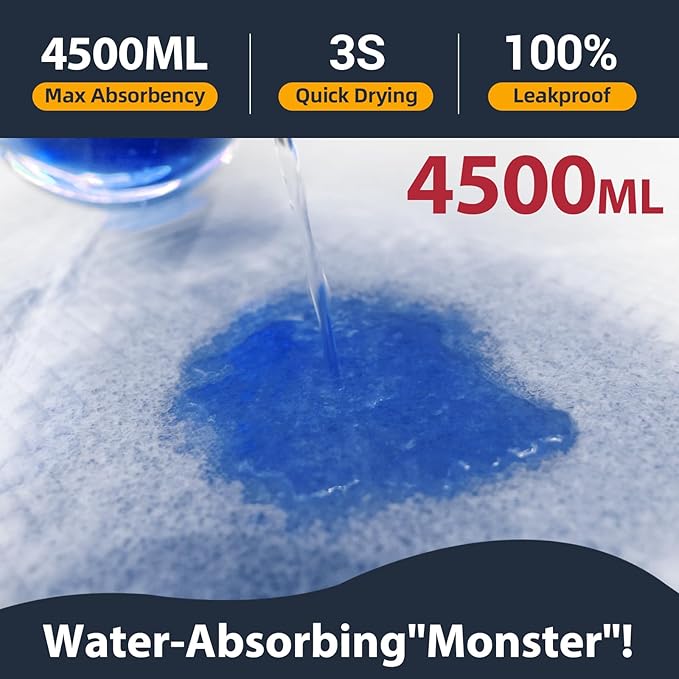 - Super Absorbent Pads: Premium disposable bed pads are 10x more absorbent than traditional pads,This disposable pads can lock in a large amount of liquid instantly,heavy duty chucks realize 3 Seconds flash dry absorbs,keeps you dry all the time