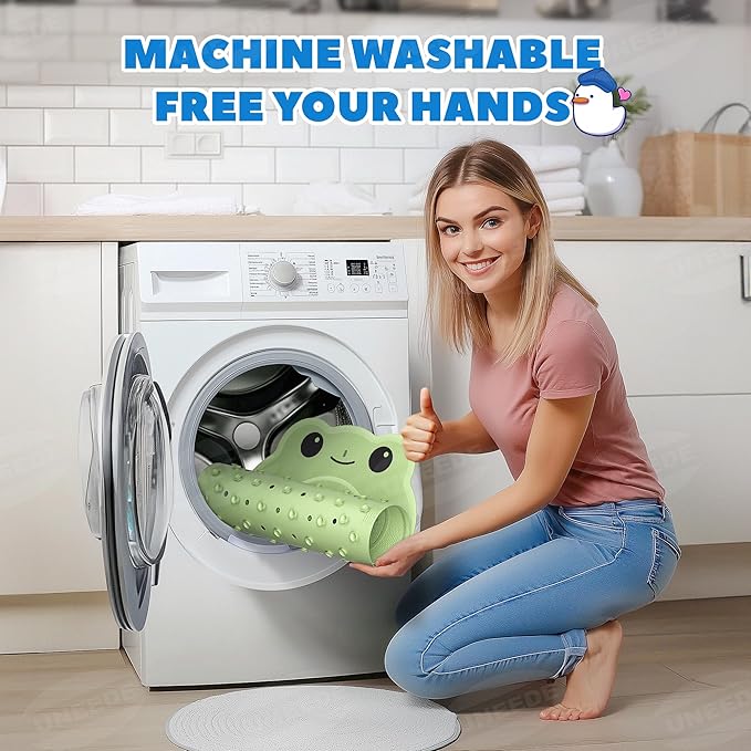 - 【Soft & Skin-Friendly - For a Better Bathing Experience】Our odor-free bathroom mat has a comfortable and soft texture. The cute frog shape allows your baby to enjoy the bath time happily.
